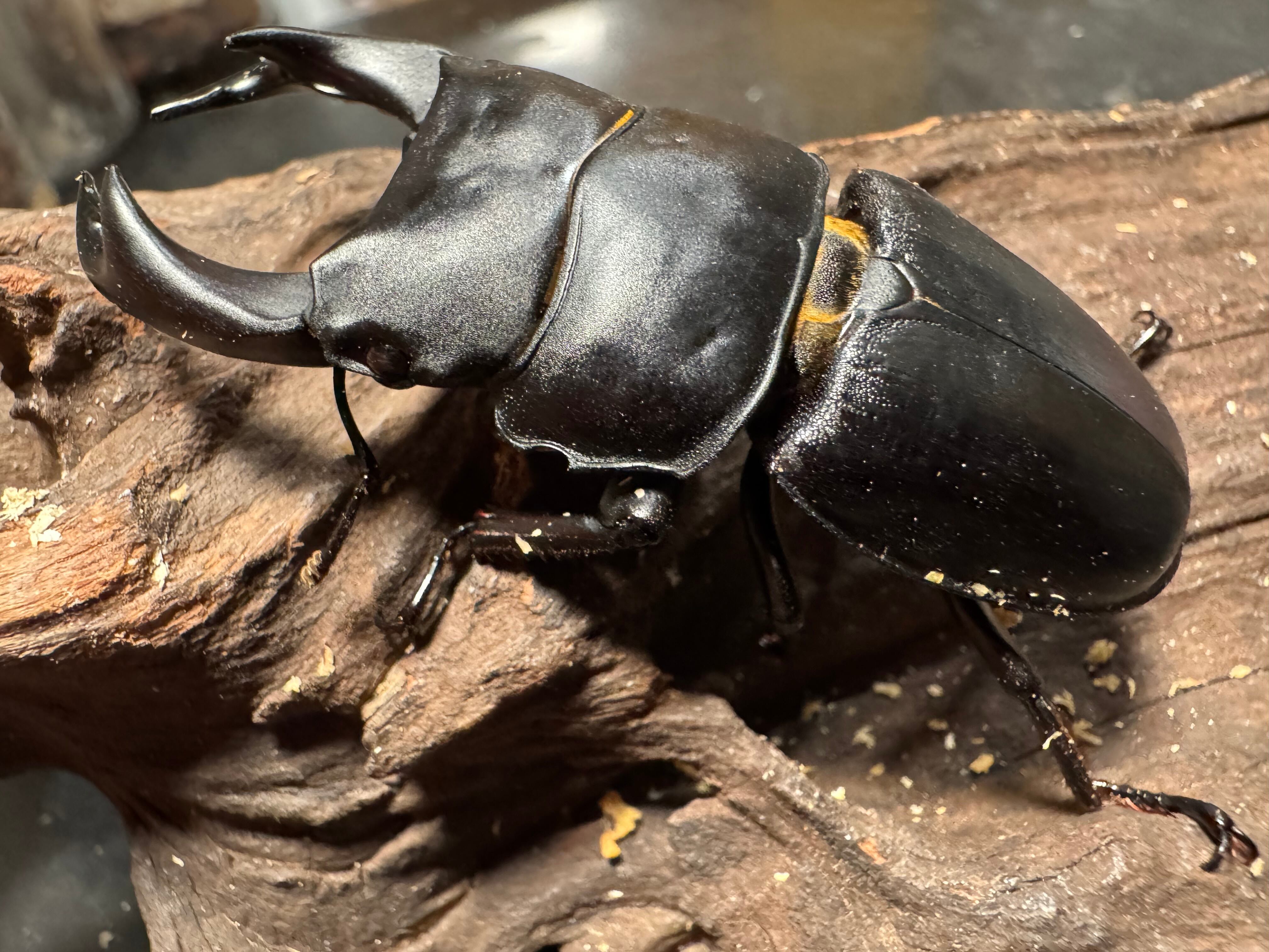 サイズはノギスで顎先(角先)から上翅末端までの最大値で計測しておりますが素人寸法ですので多少のサイズ誤差についてはご容赦ください。