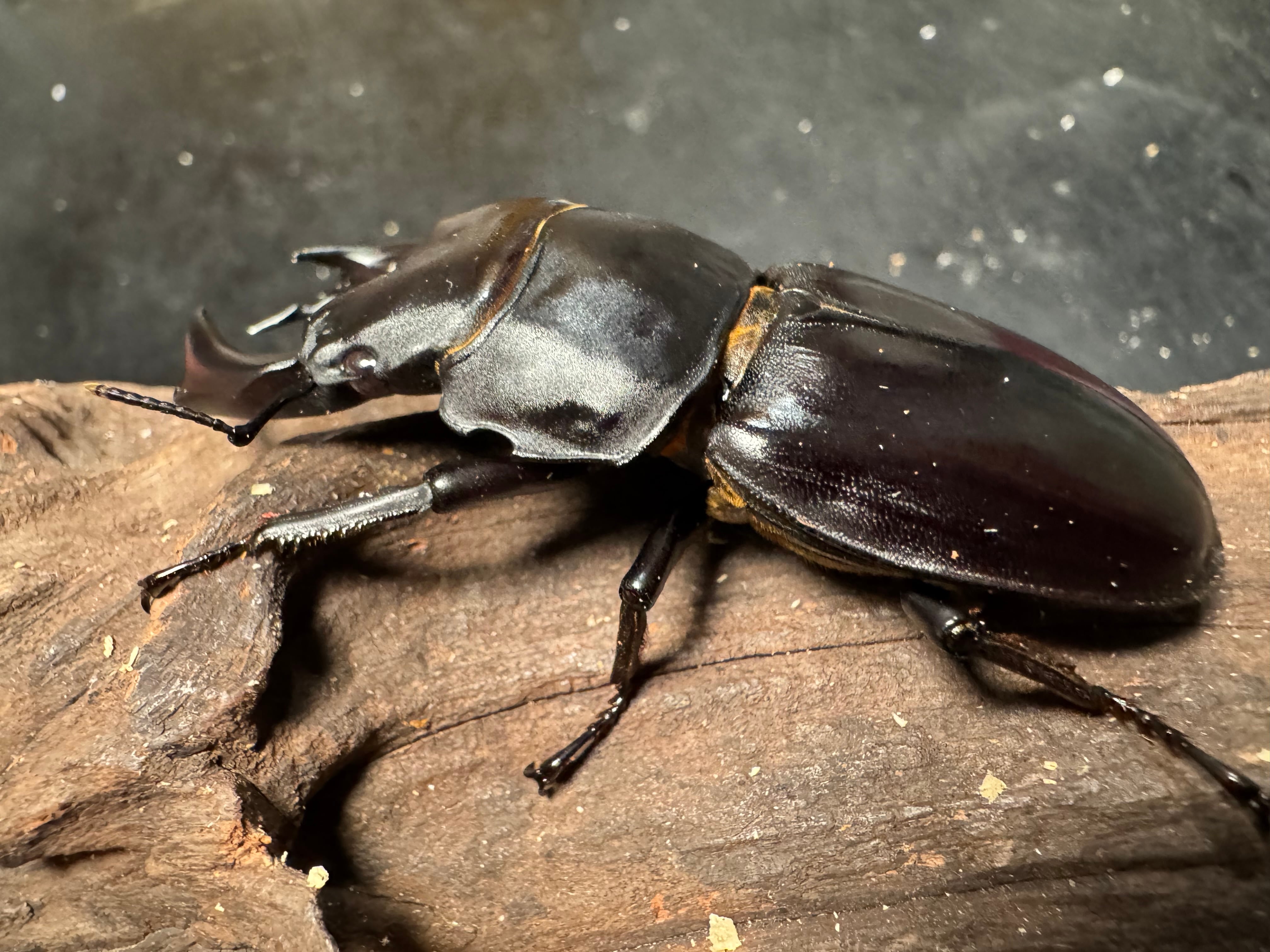 サイズはノギスで顎先(角先)から上翅末端までの最大値で計測しておりますが素人寸法ですので多少のサイズ誤差についてはご容赦ください。