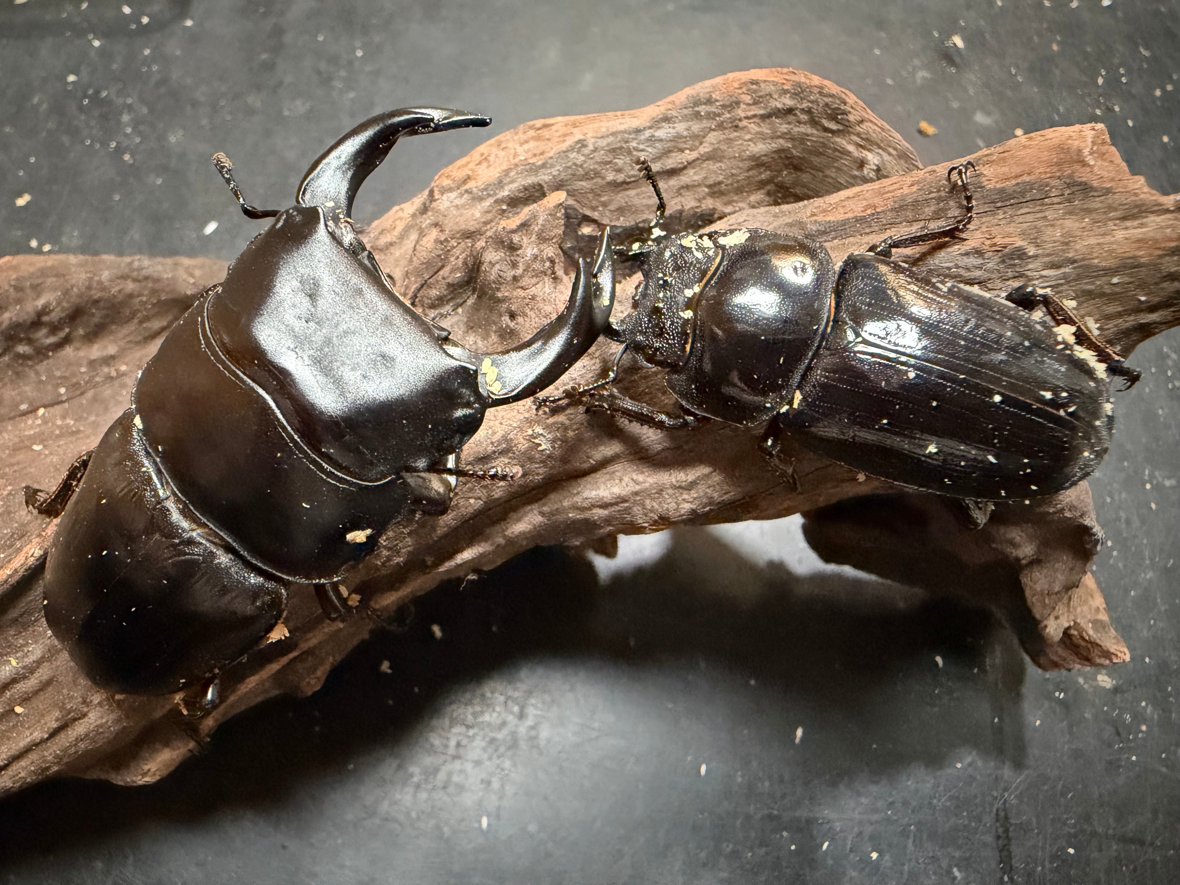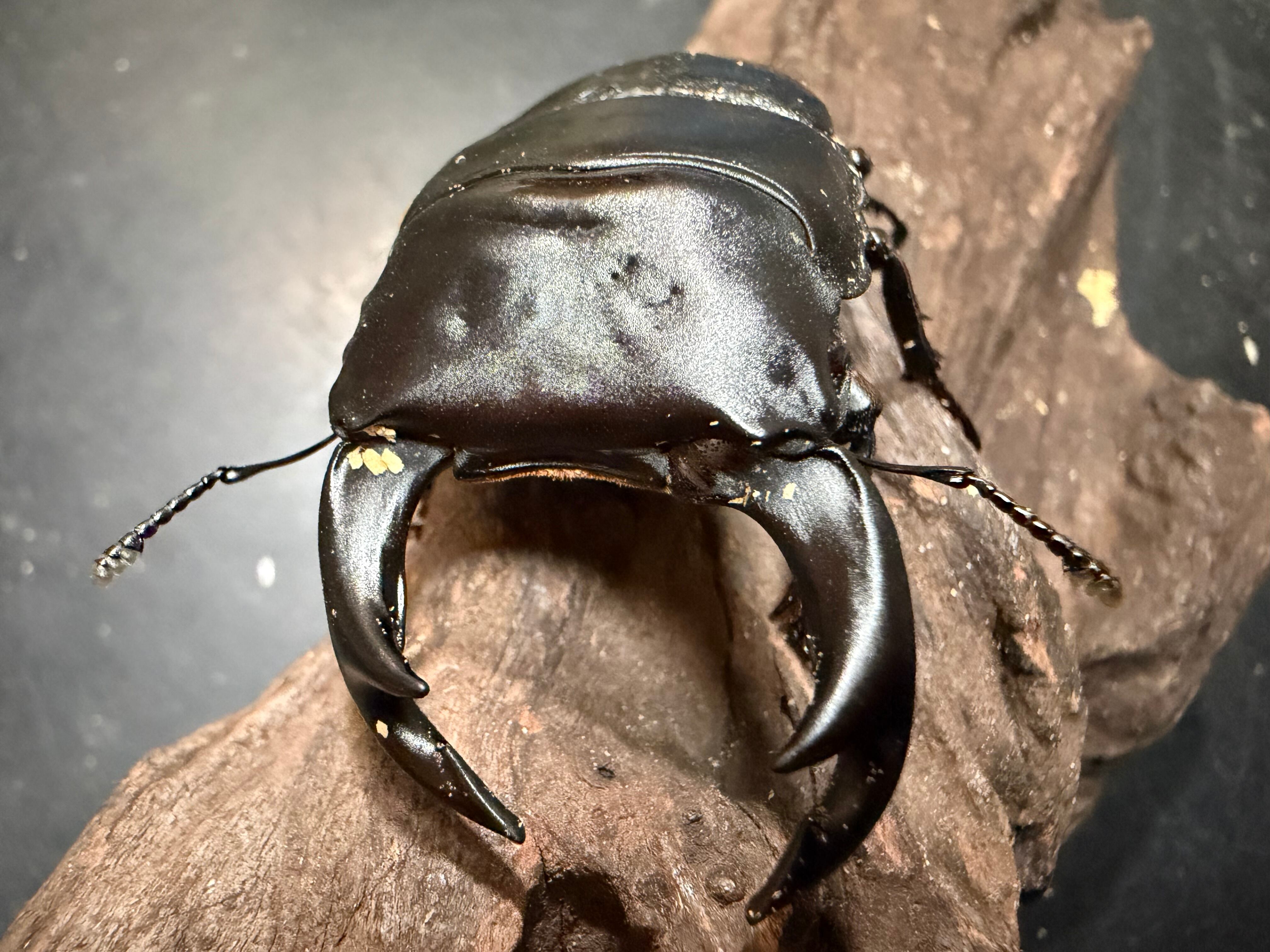 サイズはノギスで顎先(角先)から上翅末端までの最大値で計測しておりますが素人寸法ですので多少のサイズ誤差についてはご容赦ください。